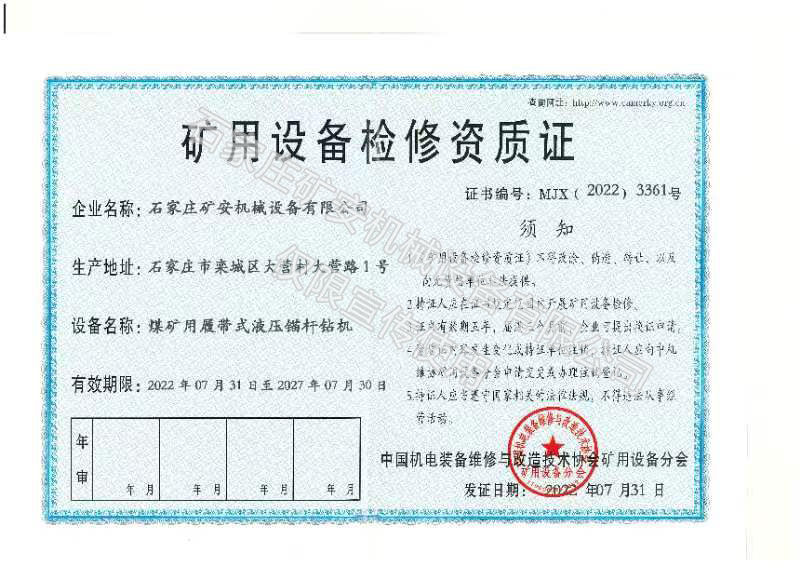 石家莊礦安機械設(shè)備有限公司成立于2011年3月,公司位于風(fēng)景優(yōu)美、科技發(fā)達(dá)、交通便利的石家莊市欒城區(qū),是一家專注生產(chǎn)煤礦井下支護機具(錨桿鉆機)和安全鉆機(防突,架柱等)及氣動隔膜泵等礦用機械設(shè)備的********,是國內(nèi)煤礦機械裝備的生產(chǎn)商和服務(wù)商,根據(jù)用戶需求提供井下適用的鉆機施工解決方案。公司致力于打造研發(fā)、制造、銷售、服務(wù)為一體的現(xiàn)代化企業(yè),全心全意為煤礦生產(chǎn)保駕護航。 ? 公司建有裝配車間、機加車間和調(diào)試車間,擁有嚴(yán)格的質(zhì)量控制體系、先進的產(chǎn)品開發(fā)系統(tǒng)、完善的試驗檢測設(shè)施、良好的售后服務(wù)保障。先后與中煤科工集團沈陽研究院、西安研究院、太原理工大學(xué)、燕山大學(xué)等知名院校建立了緊密的合作關(guān)系。 ? 公司產(chǎn)品主要銷往山西、陜西、山東、內(nèi)蒙古、黑龍江、云南、貴州等七十多個礦區(qū)和地方煤礦,擁有一支成熟的售后技術(shù)團隊,并且和中煤集團、華電煤業(yè)集團、華潤煤業(yè)集團、潞安集團、山西焦煤、淮北礦業(yè)等國內(nèi)知名企業(yè)達(dá)成長期合作關(guān)系。 ? 公司始終秉持“讓煤礦生產(chǎn)更安全”的發(fā)展使命,力求誠信與創(chuàng)新,追求卓越與完美,深知“實實在在、心無旁騖做實業(yè)”,這才是本分!石家莊礦安機械設(shè)備有限公司愿與您攜手共進,共同發(fā)展!為客戶創(chuàng)造價值,提供優(yōu)質(zhì)的產(chǎn)品和*佳的服務(wù)是我們永無止境的理念!